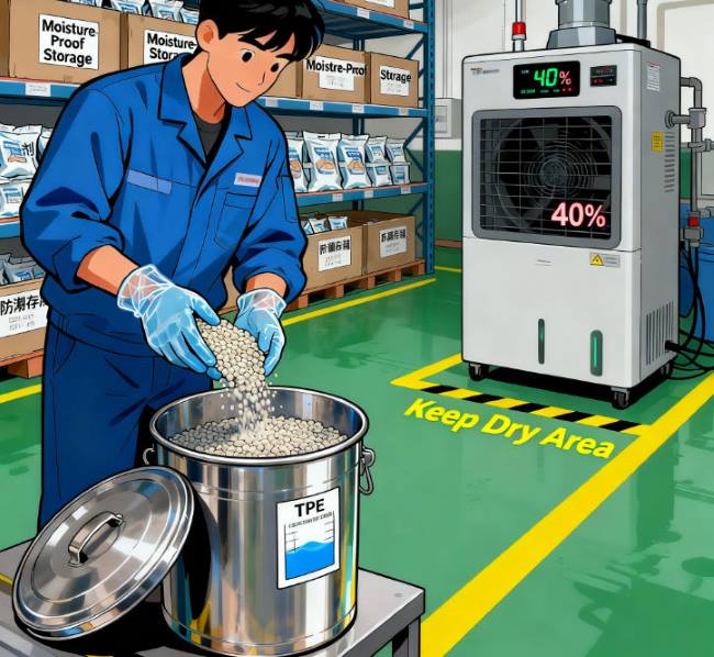 Sebagai bahan polimer, bahan mentah TPE sangat sensitif terhadap kelembapan persekitaran. Mereka mudah menyerap lembapan dari udara semasa penyimpanan atau pengangkutan, yang membawa kepada sifat bahan yang terdegradasi, kesukaran memproses, dan juga menjejaskan kualiti produk akhir. Pengurusan lembapan yang berkesan untuk bahan TPE memerlukan pendekatan pelbagai aspek merangkumi kawalan persekitaran penyimpanan, kaedah pembungkusan yang dioptimumkan dan langkah perlindungan tambahan.